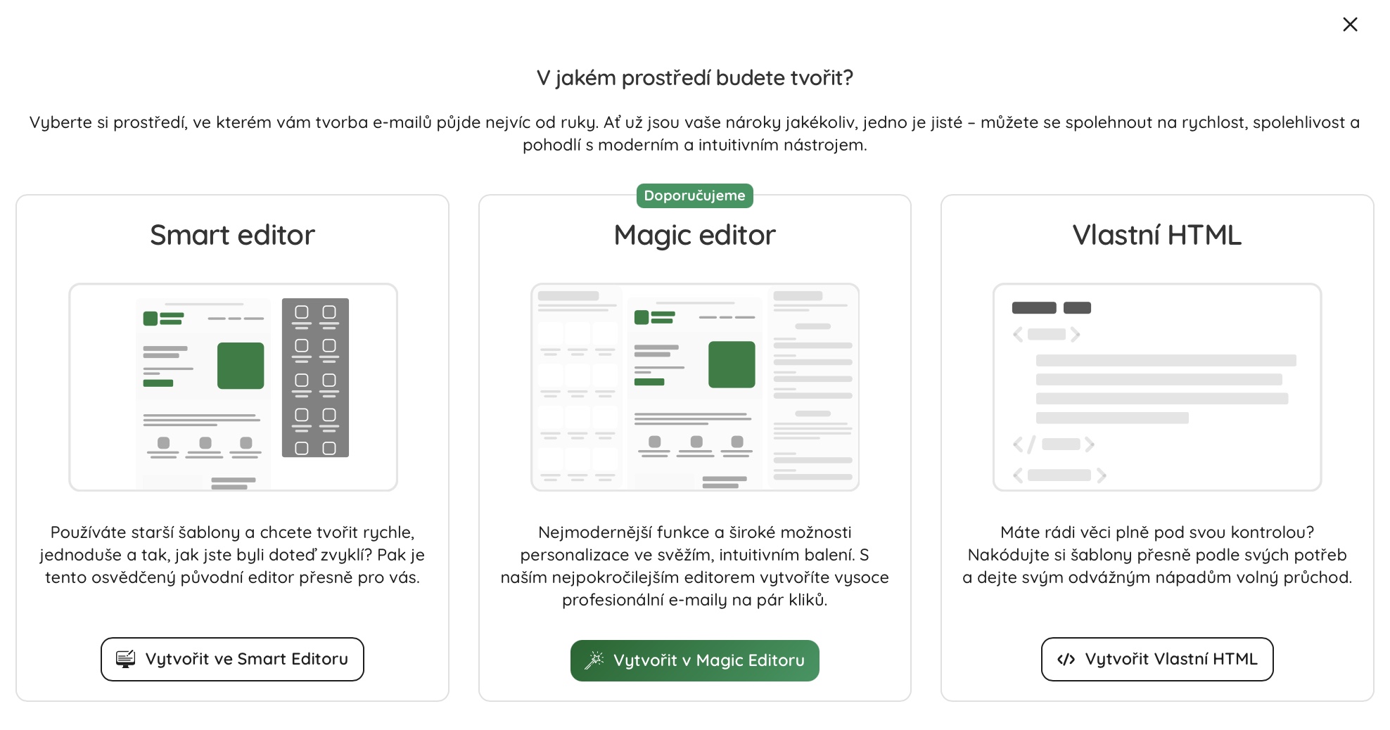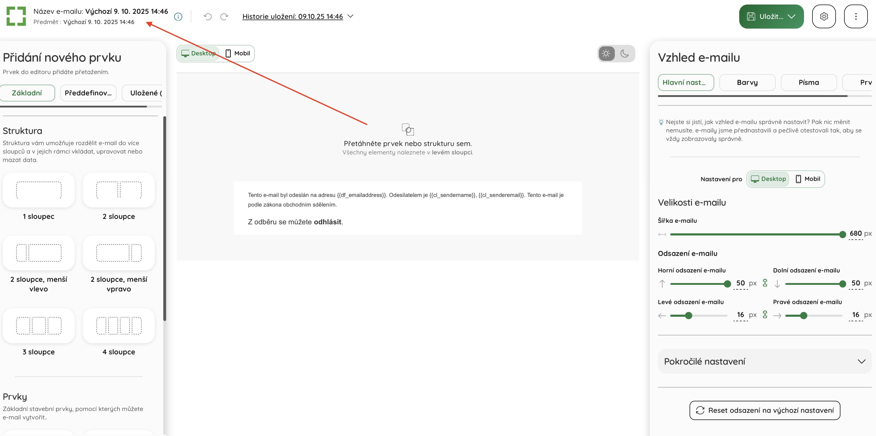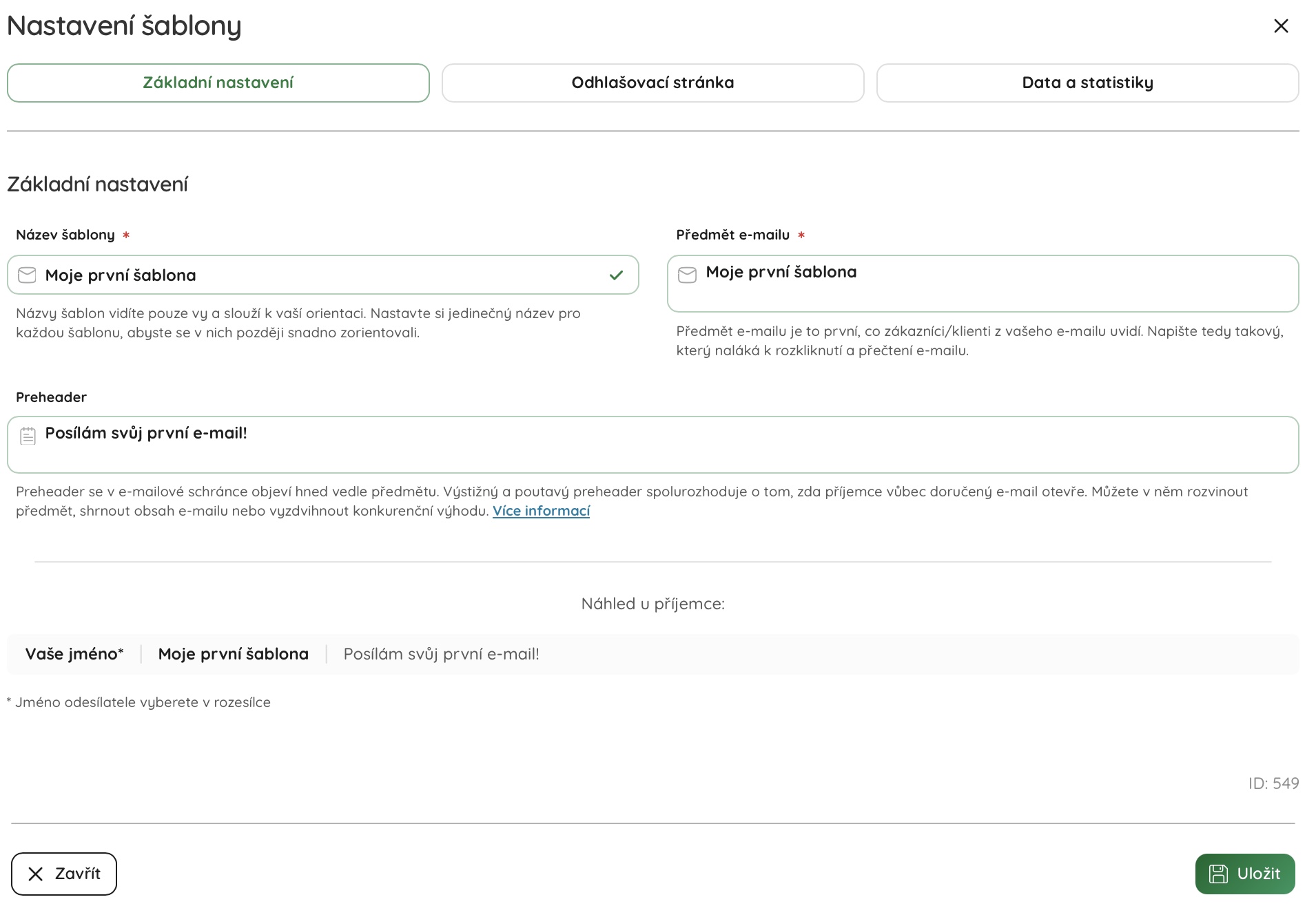Klikněte zde a zvolte název šablony, předmět e-mailu a preheader.