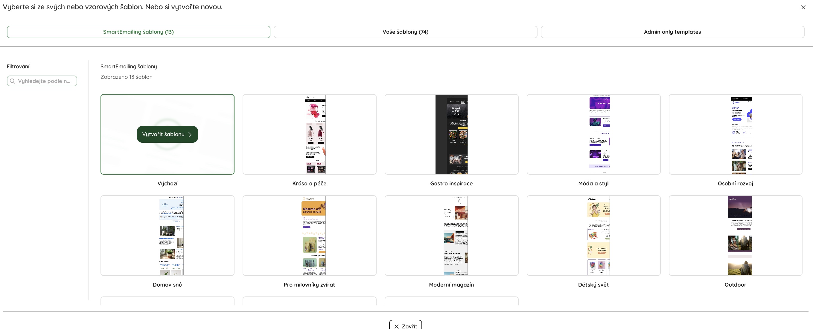 Můžete si vybrat jednu ze vzorových šablon, nebo použít čistou, výchozí šablonu.