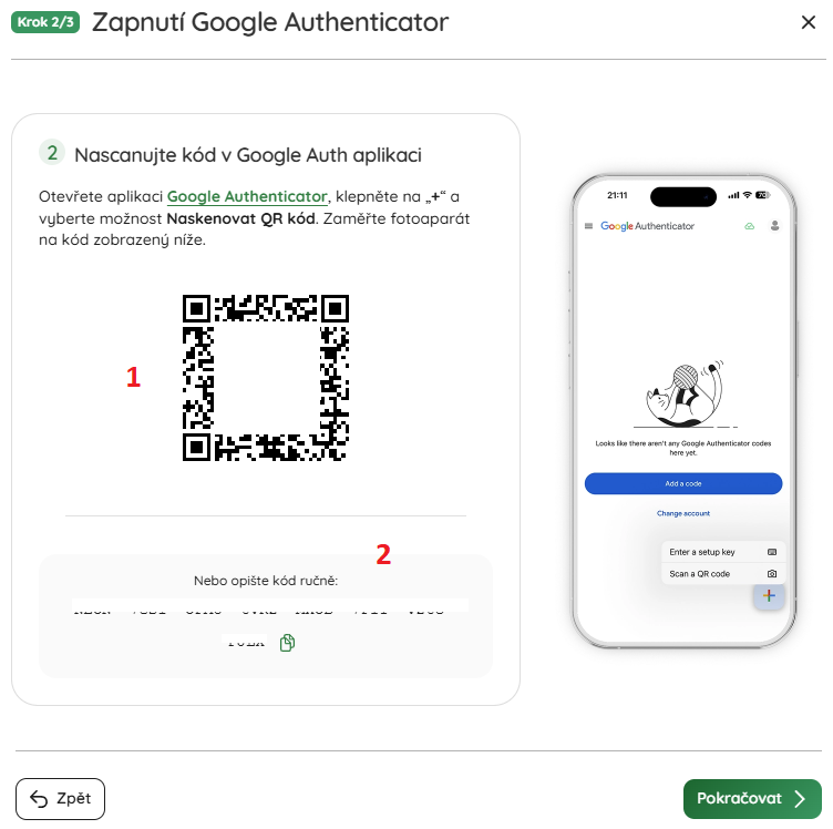 V tomto kroku propojíte vybranou autentizační aplikaci se svým účtem ve SmartEmailingu.