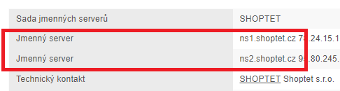 Zajímá nás jmenný server (name server), což je právě server, kde je umístěna administrace dané domény. Pokud zde vidíte Shoptet, můžete pokračovat dále.