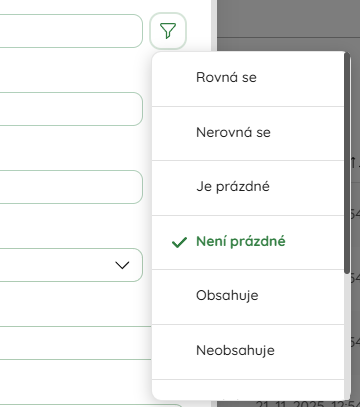 Pokud nastavíte tuto možnost, zpřístupní se možnost používat pokročilé operátory u filtrů, které jsou zmíněny výše. Díky těmto operátorům můžete výrazně více zpřesnit kritéria filtrování. Pokud tuto možnost povolíte, objeví se v nastavení fltru ikony trychtýřů.