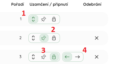 Poslední ikonou je zámek (3), který umožňuje nastavit ukotvený sloupec, tedy takový, který je pevnou součástí přehledu bez ohledu na to, zda pohybujete přehledem vpravo nebo vlevo. Při výběru této možnosti se také objeví dvě šipky (4), díky kterým můžete zvolit, zda bude sloupec ukotven vlevo či vpravo.