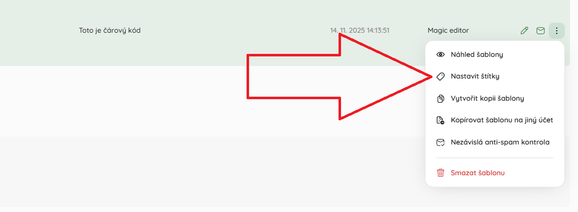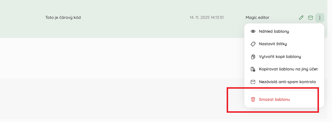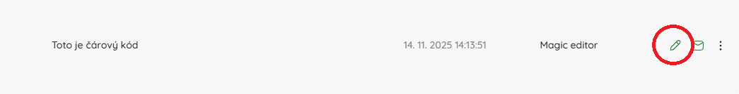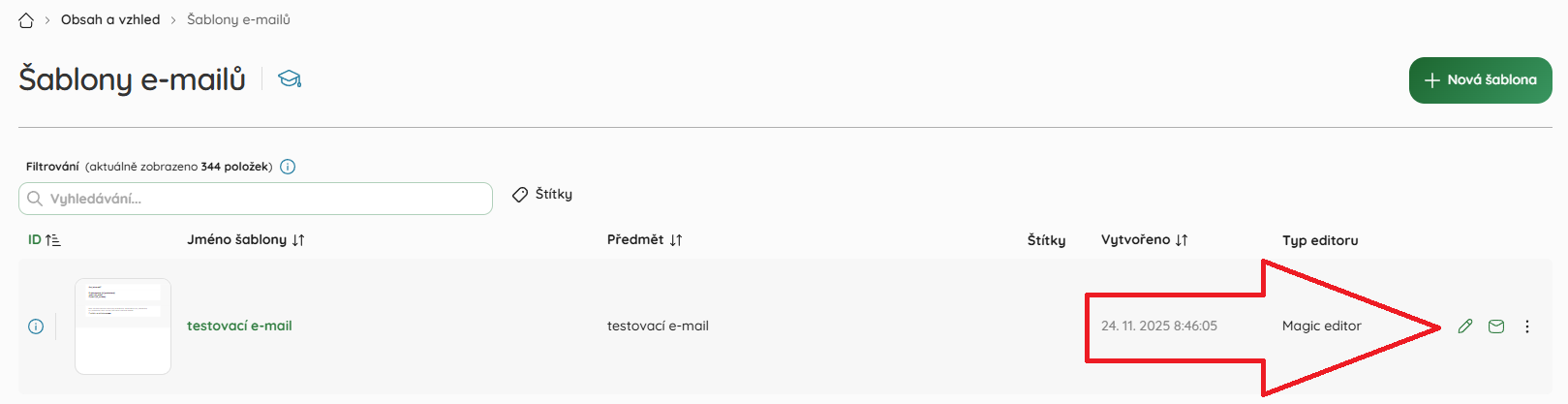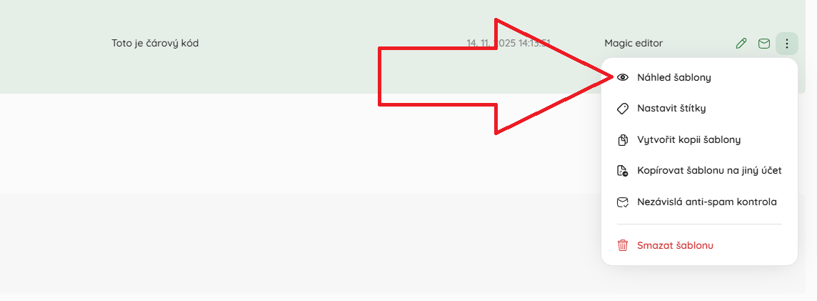 První možností je editace šablony, tedy možnost její dodatečné úpravy. Po kliknutí na ikonu tužky budete přesměrování do editoru, ve kterém byla šablona vytvořena.