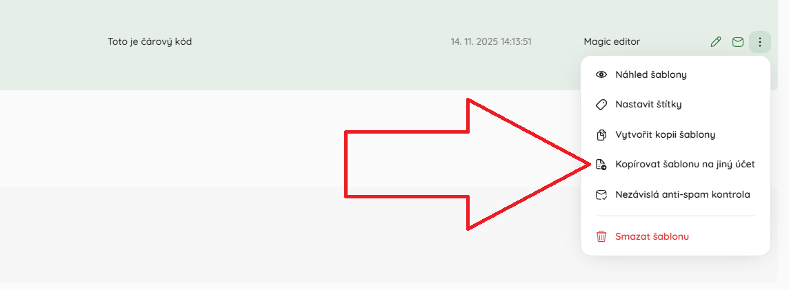 Pokud máte pod svůj účet přiřazeny také podúčty, můžete na ně kopírovat e-mailové šablony touto cestou.