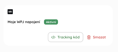 Po aktivaci napojení uvidíte v přehledu integrací nově vytvořené napojení, u kterého uvidíte tlačítko Tracking kód, na které je potřeba kliknout, abyste získali kód pro sledování aktivity zákazníků.